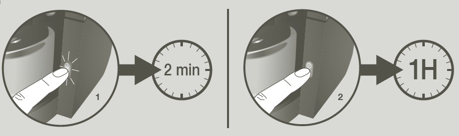 3 – Spusťte cyklus (bez kávy). Po 2 minutách zařízení ručně zastavte. Nechte kávovar hodinu odpočinout