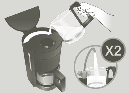 2 – Nalijte roztok do nádržky na vodu (bez kávy)